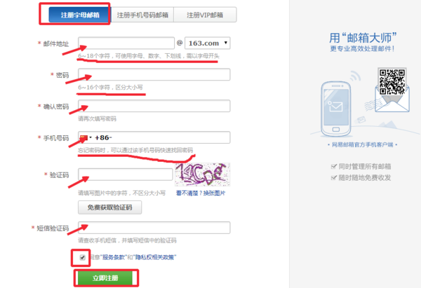 4、在注冊(cè)郵箱時(shí)一定要按照上面提示的要求進(jìn)行注冊(cè),全部輸入完畢后點(diǎn)“立即注冊(cè)”就創(chuàng)建了自己的郵箱了;