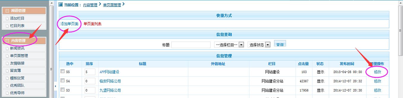 雙收網(wǎng)站建設(shè)后臺管理操作說明,網(wǎng)站建設(shè)好后,請參考以下后臺管理基本操作說明,企業(yè)網(wǎng)站日常管理基本上是內(nèi)容管理,頻道管理需要變動時請聯(lián)系我們或加微信咨詢。